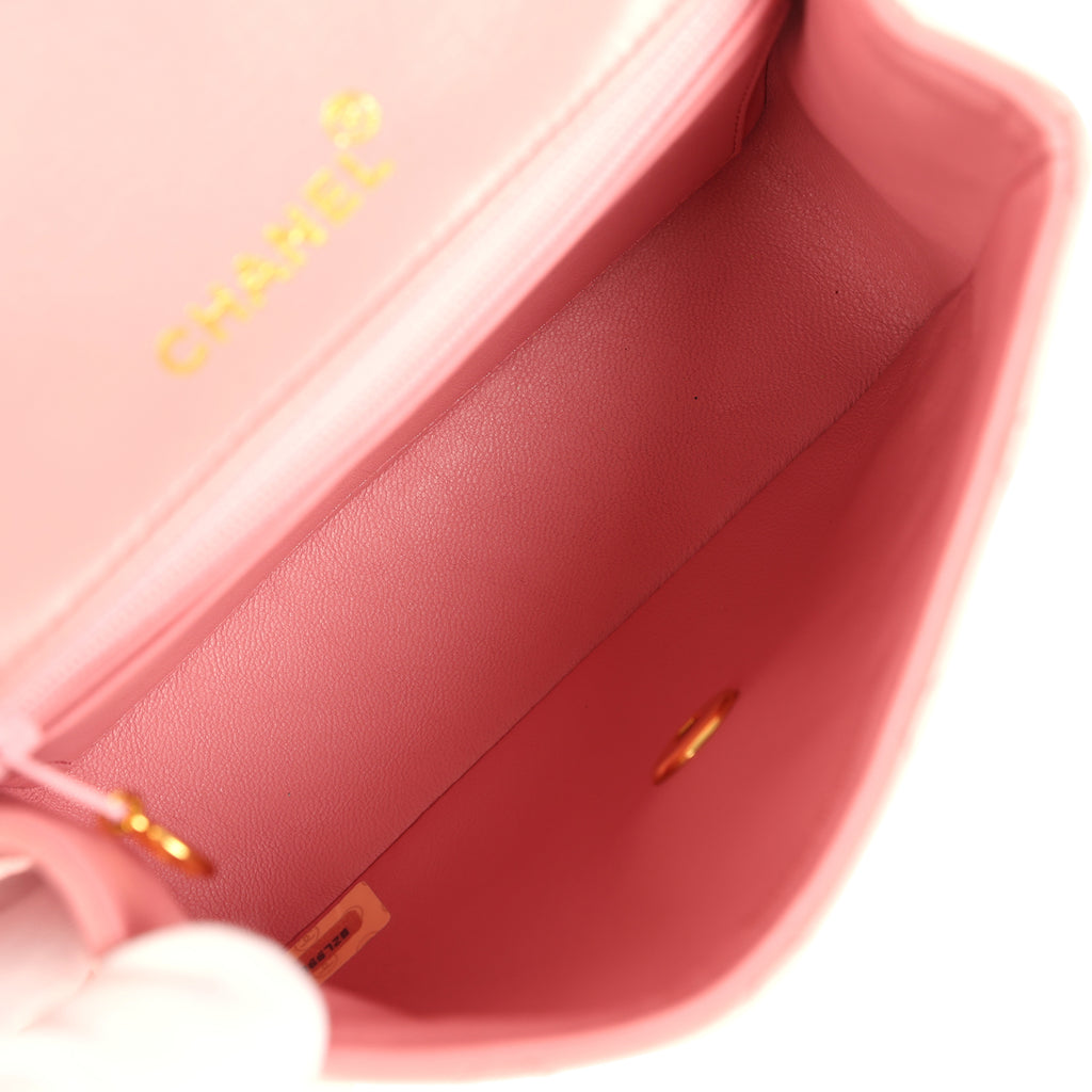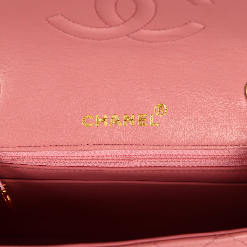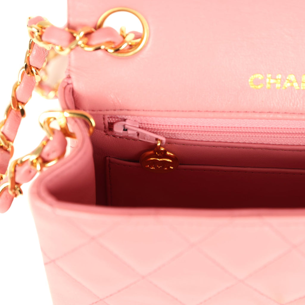 Vintage Chanel Mini Square Flap Dark Pink Lambskin Gold Hardware