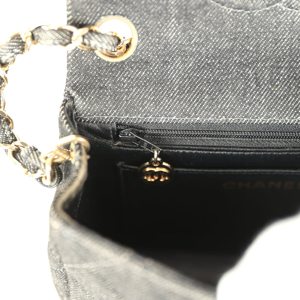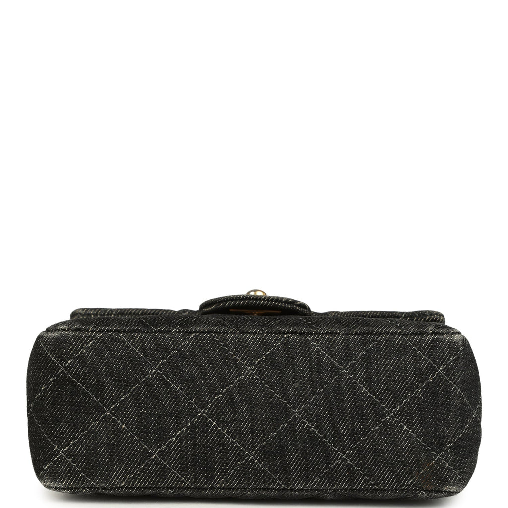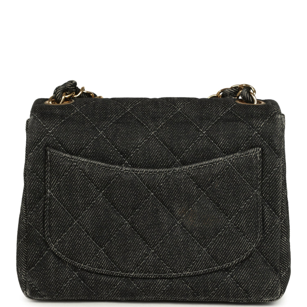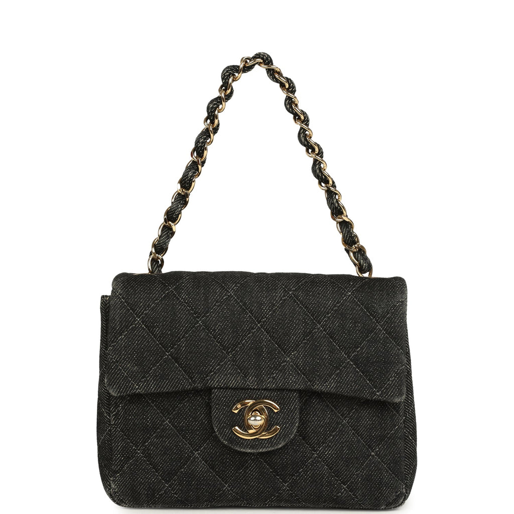 Vintage Chanel Mini Square Flap Bag Black Denim Gold Hardware