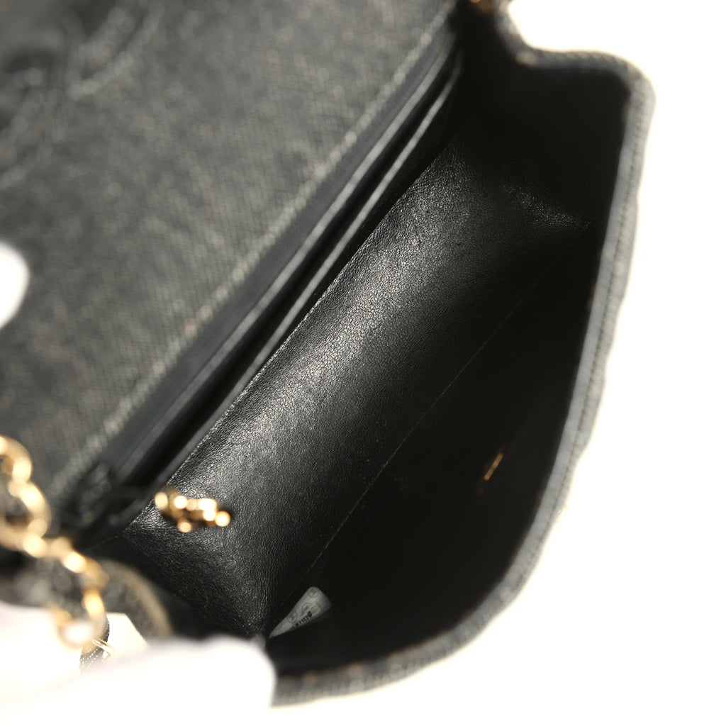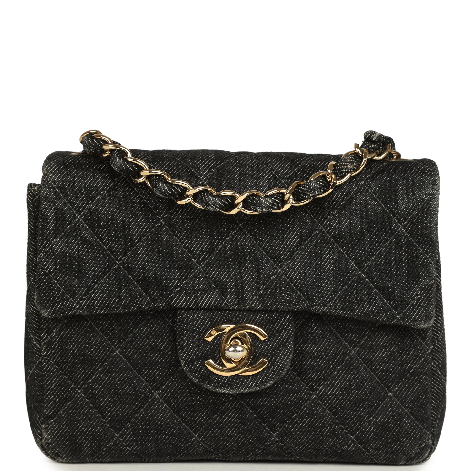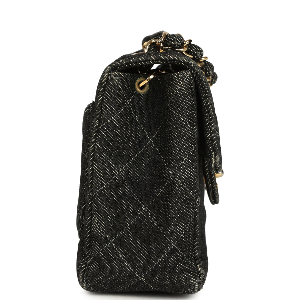 Vintage Chanel Mini Square Flap Bag Black Denim Gold Hardware