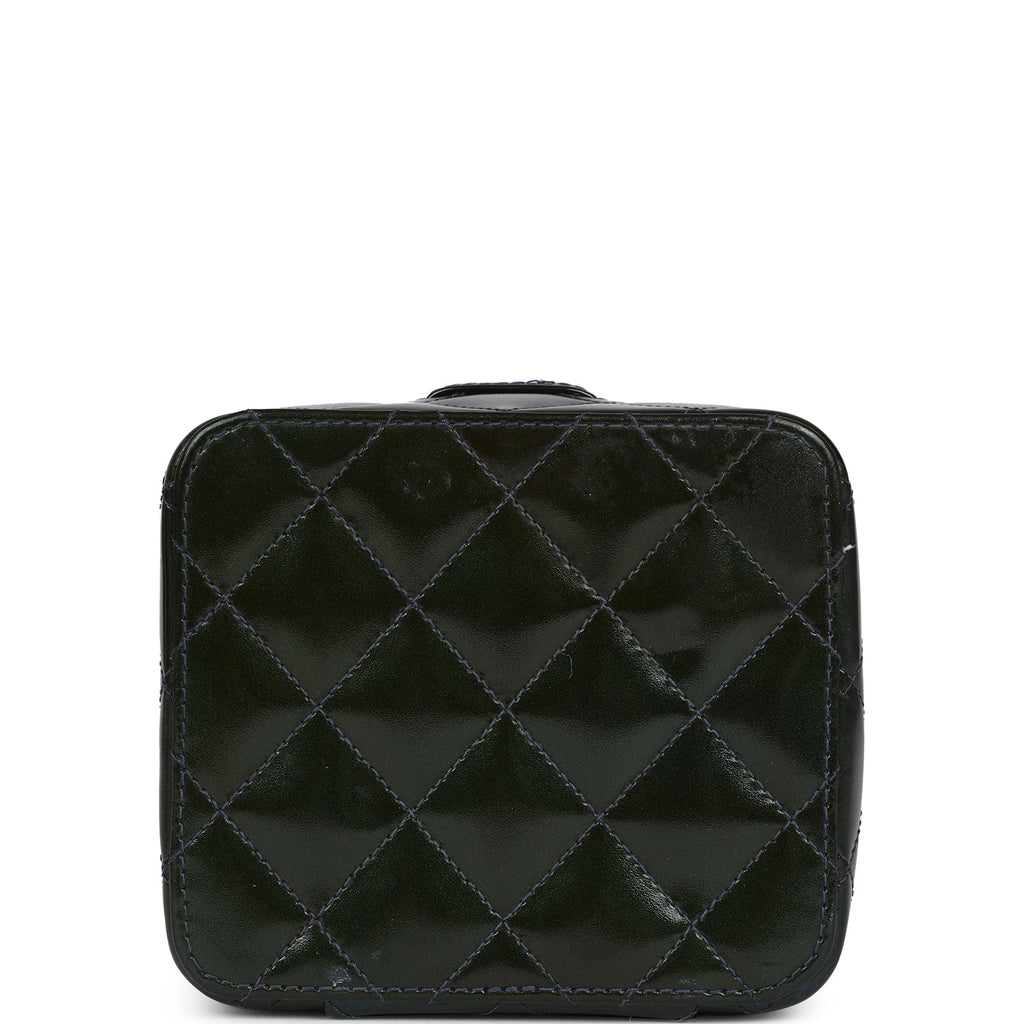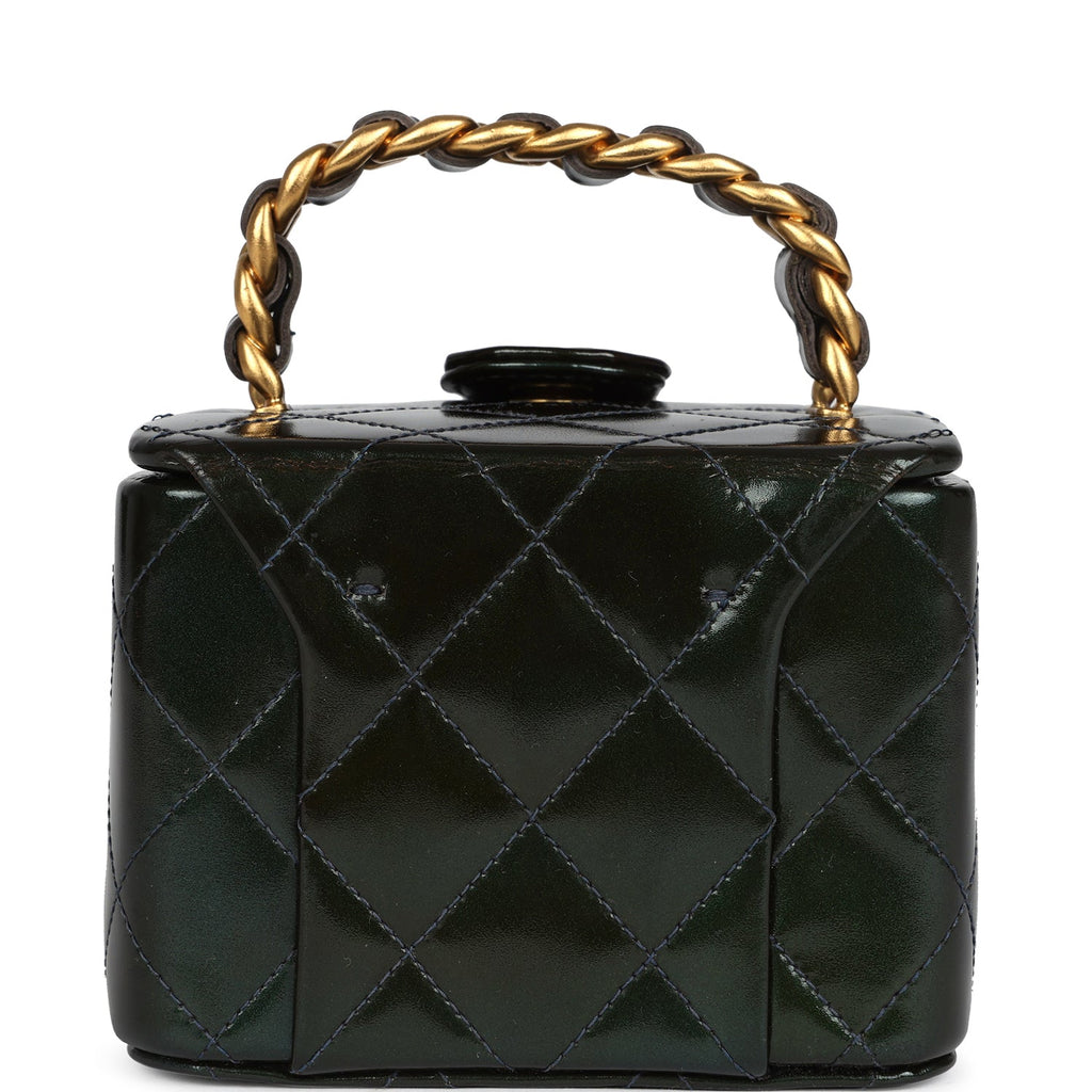 Vintage Chanel Mini Square Vanity Green Patent Antique Gold Hardware