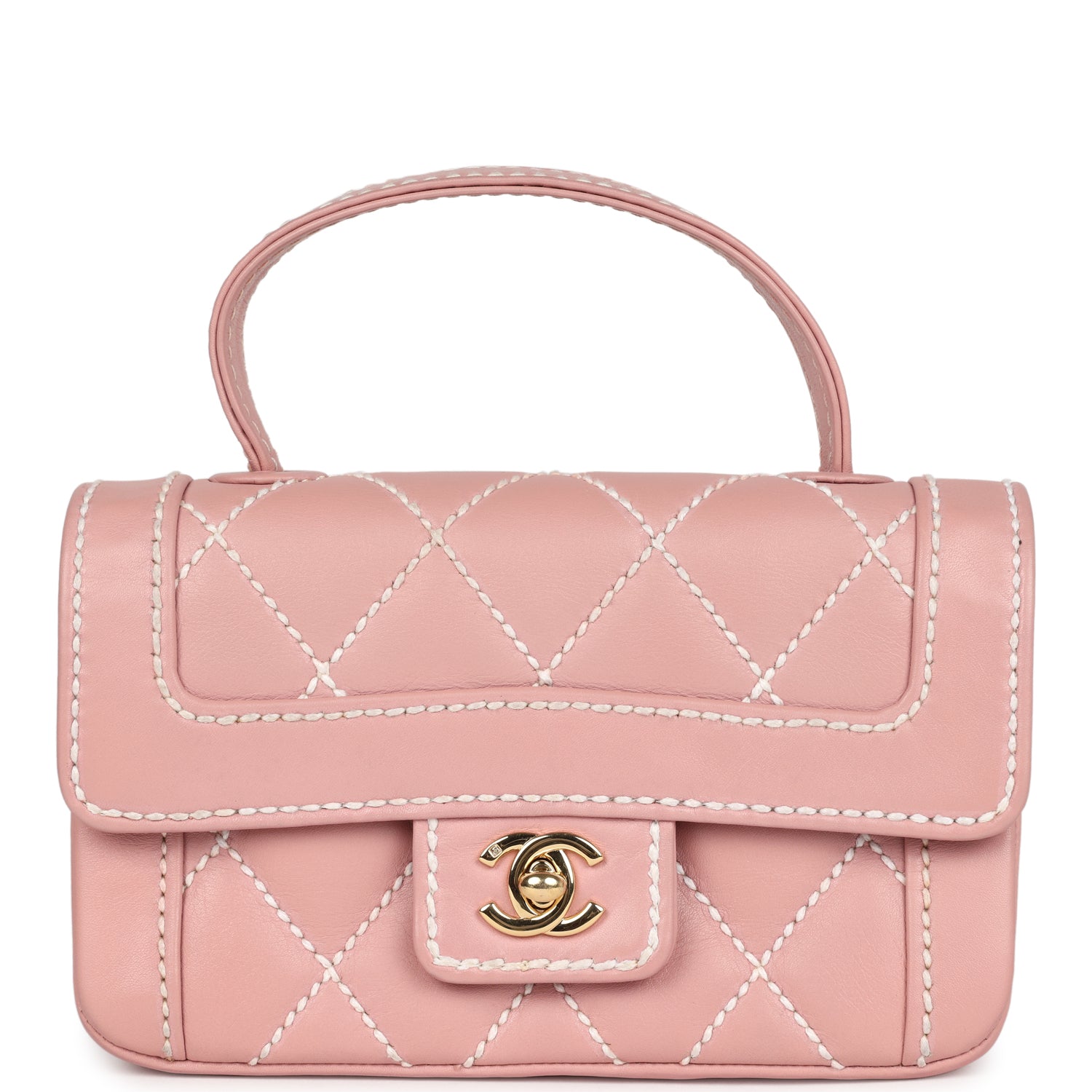Vintage Chanel Mini Wild Stitch Surpique Top Handle Flap Bag Pink Calfskin Gold Hardware