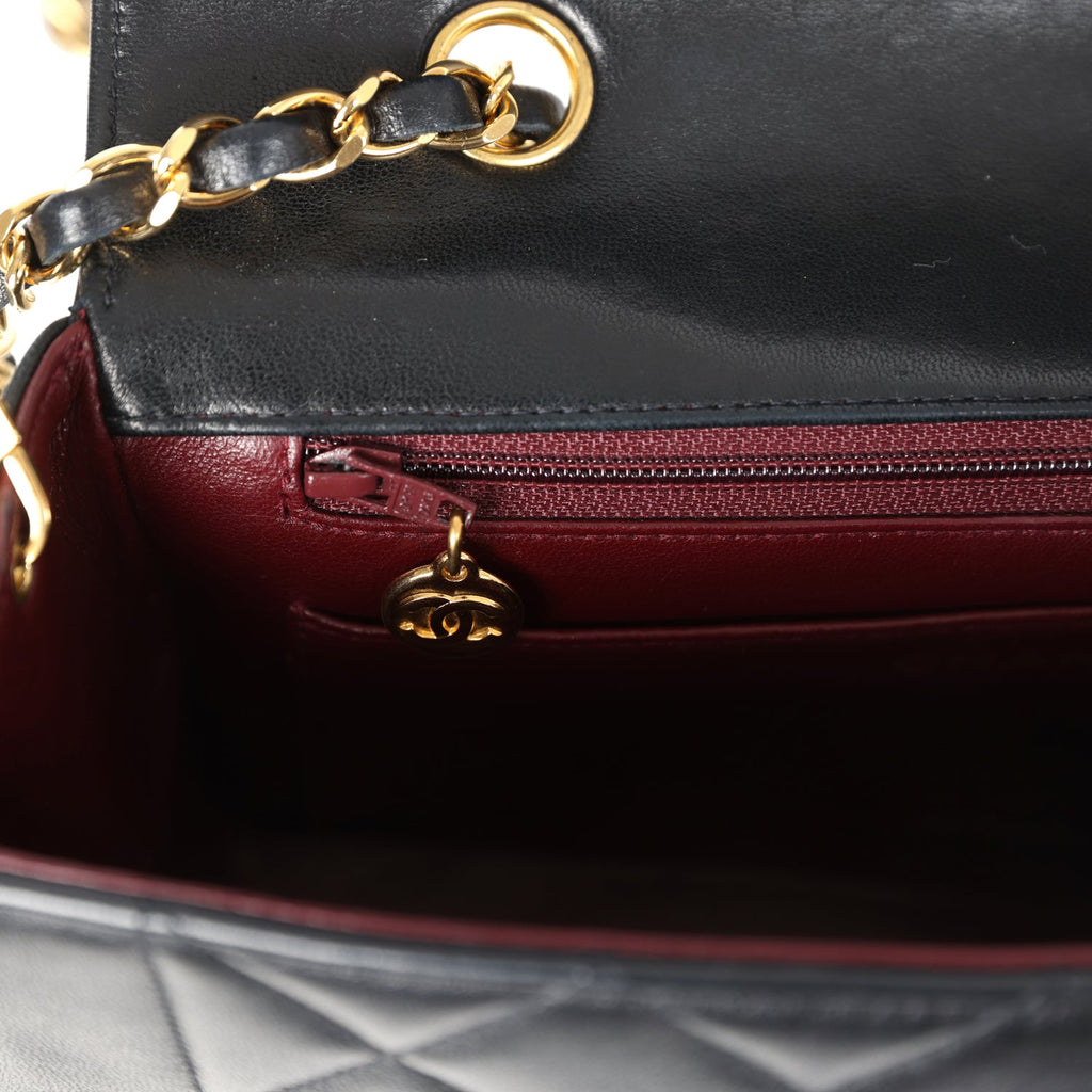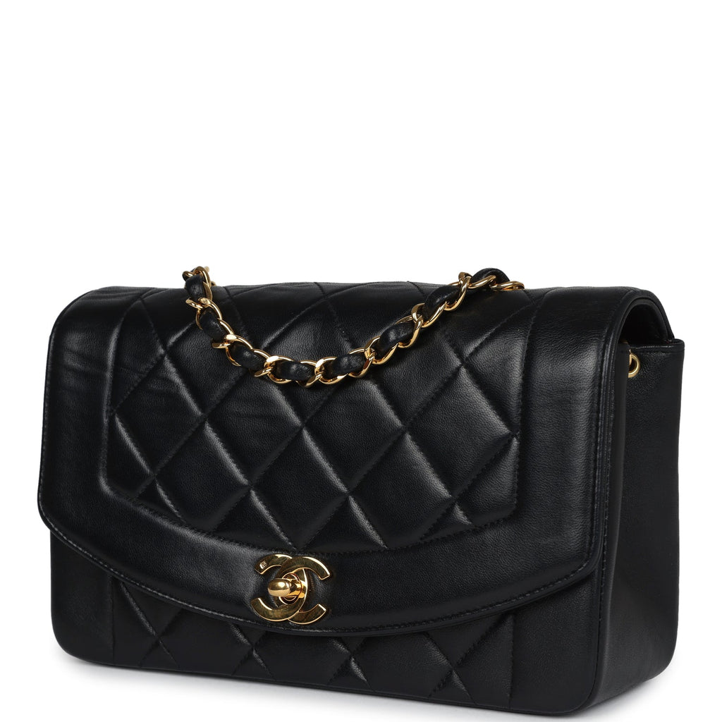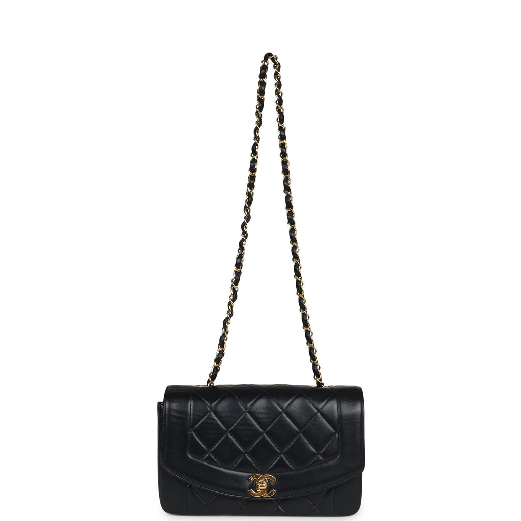 Vintage Chanel Small Diana Flap Bag Black Lambskin Gold Hardware