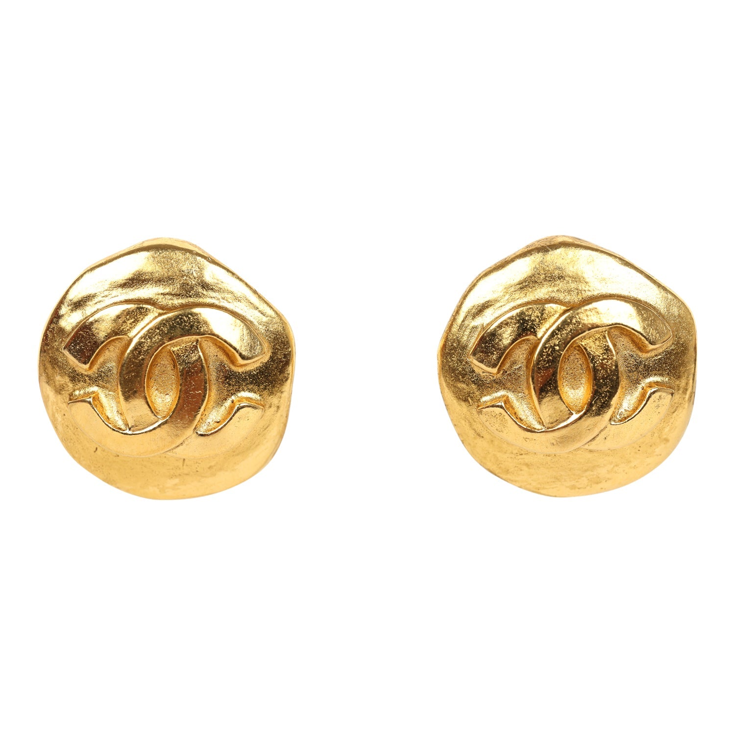 Vintage Chanel Small Round Hammered CC Earrings Gold Plated Hardware