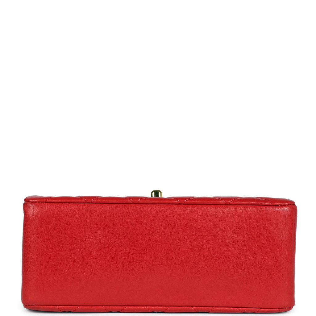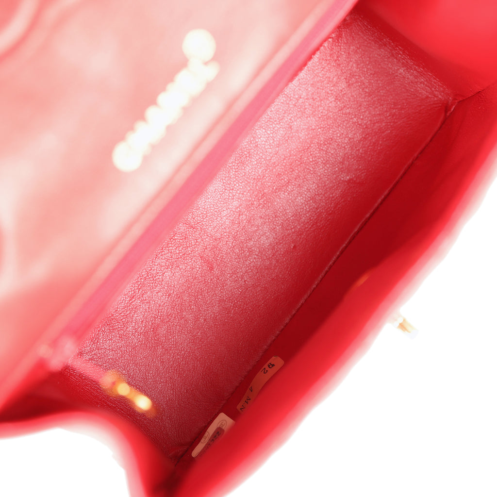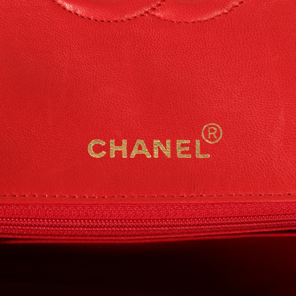 Vintage Chanel Top Handle Square Flap Red Lambskin Gold Hardware