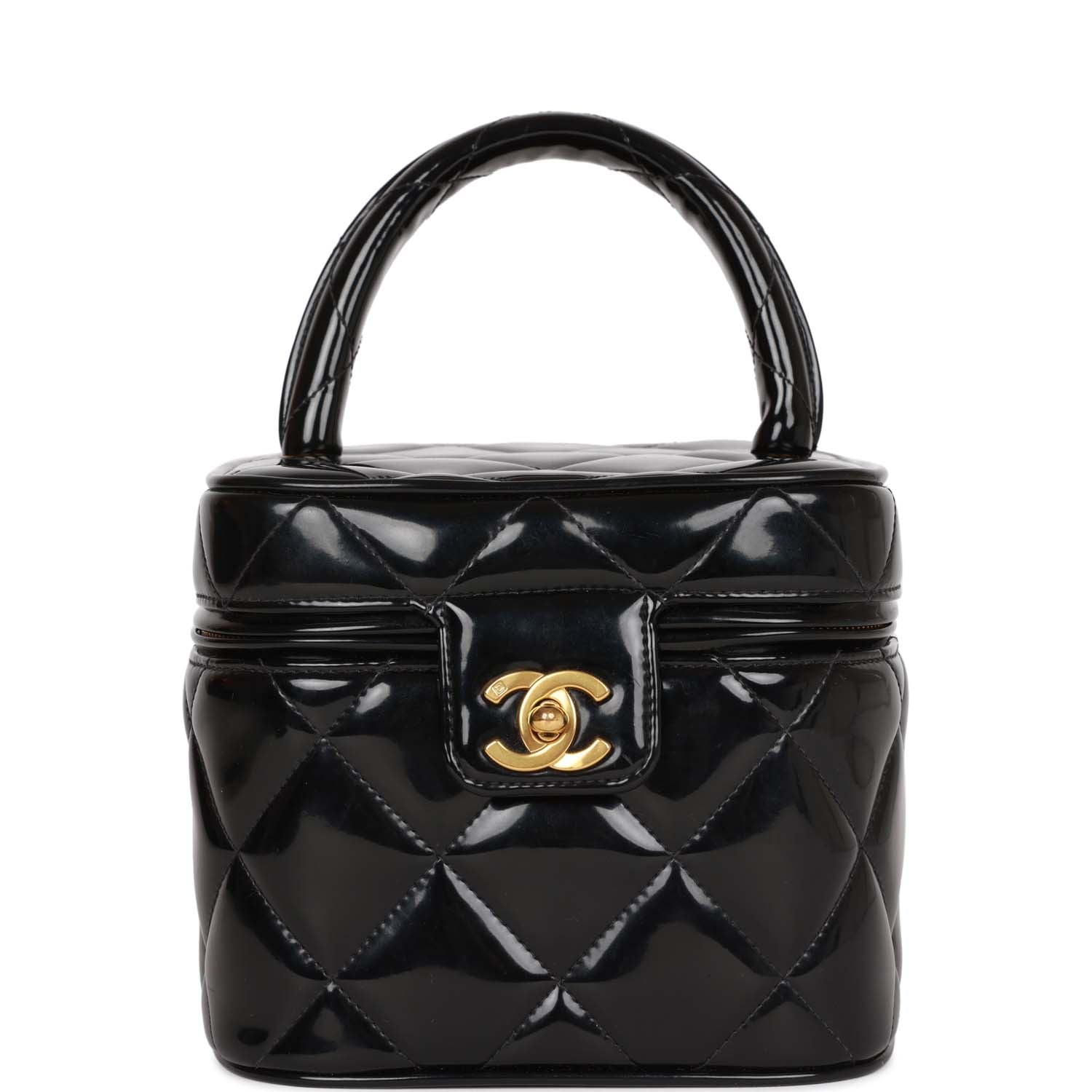 Vintage Chanel Vanity Heart Mirror Bag Black Patent Gold Hardware