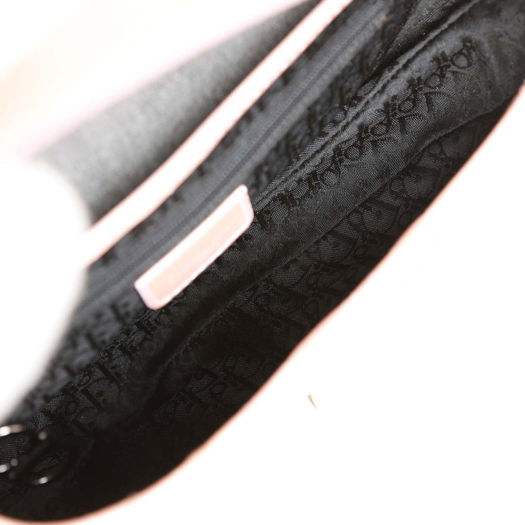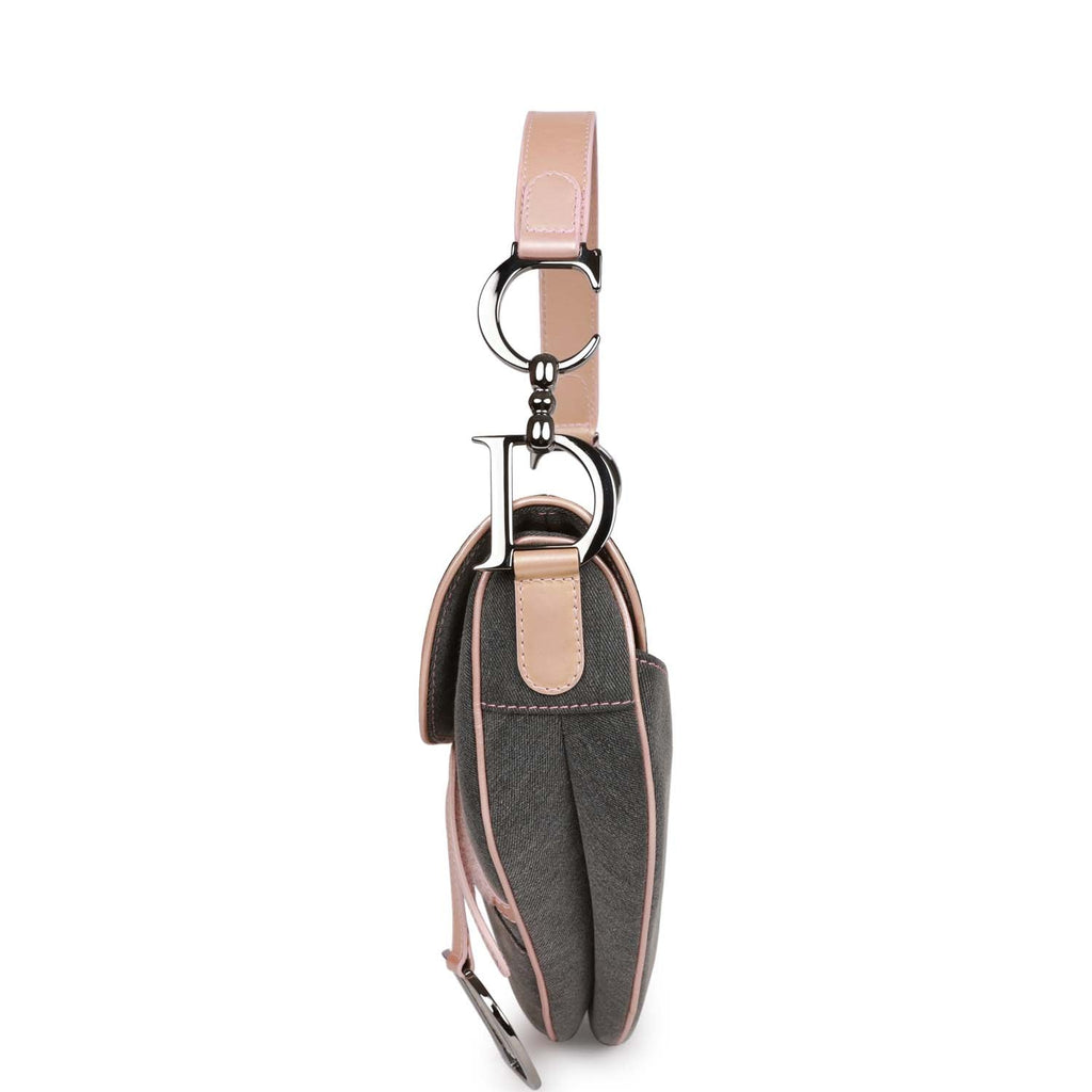 Vintage Christian Dior Saddle Bag Grey Denim and Pink Metallic Leather Silver Hardware