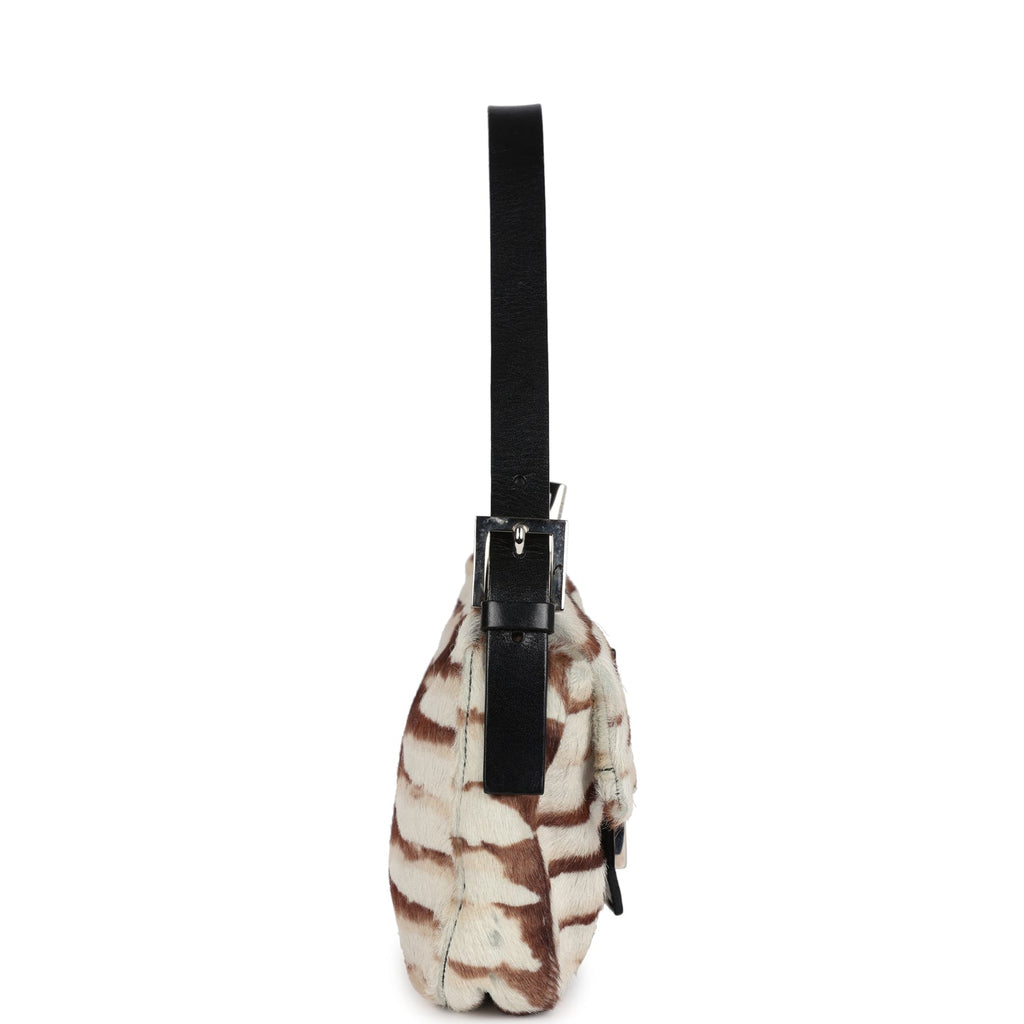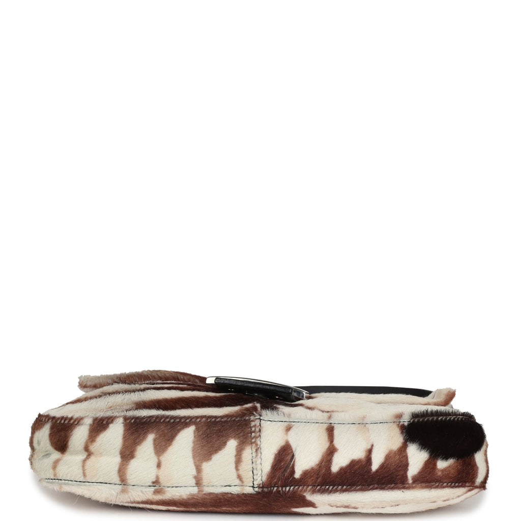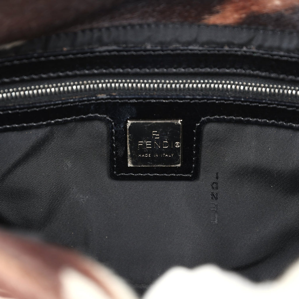 Vintage Fendi Baguette Bag Brown and White Pony Hair Silver Hardware