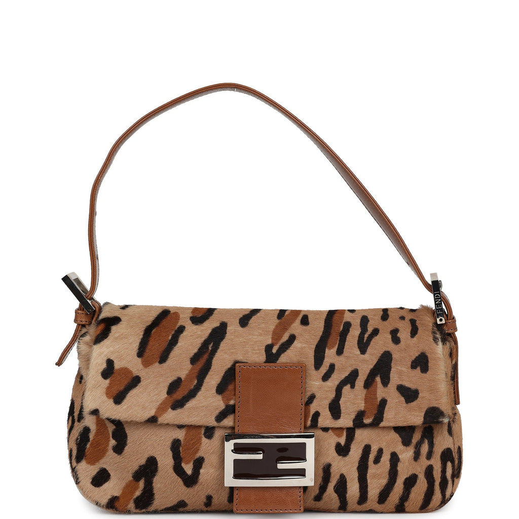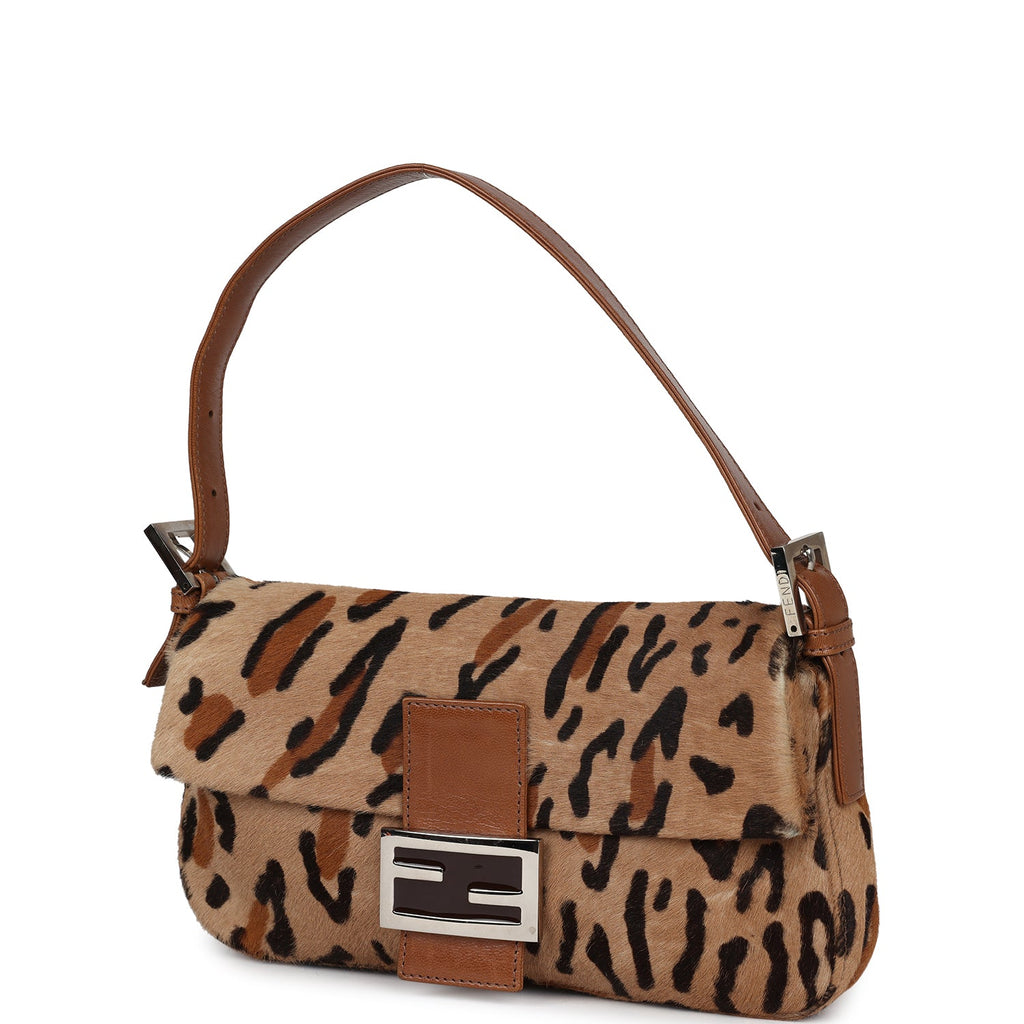 Vintage Fendi Baguette Bag Brown Leopard Pony Hair Silver Hardware
