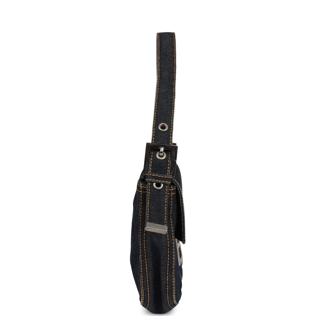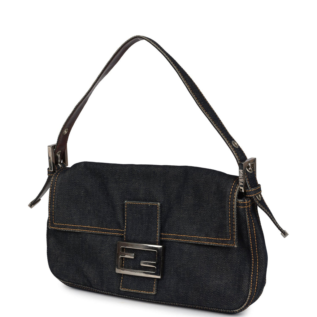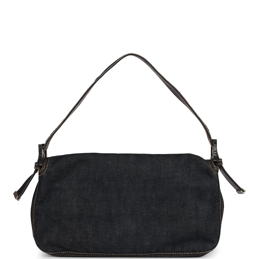Vintage Fendi Baguette Bag Dark Blue Denim Silver Hardware