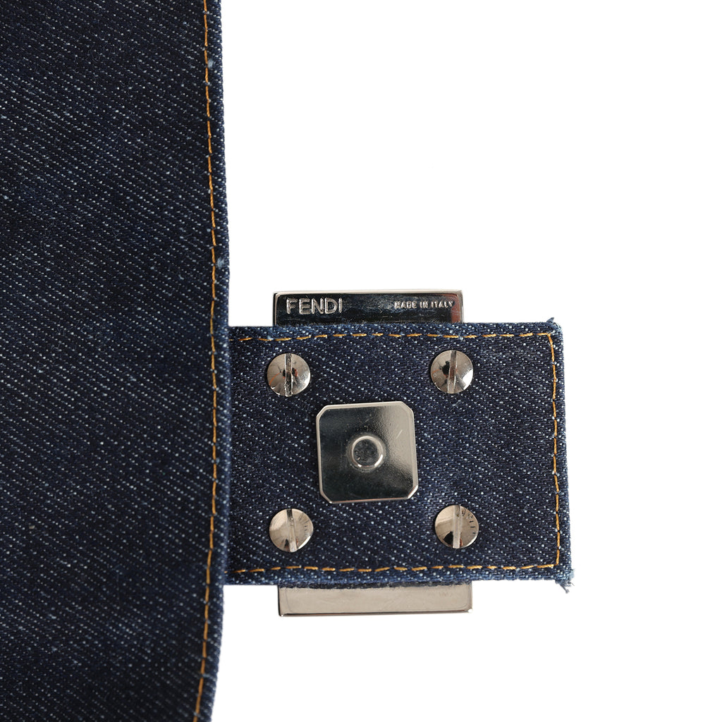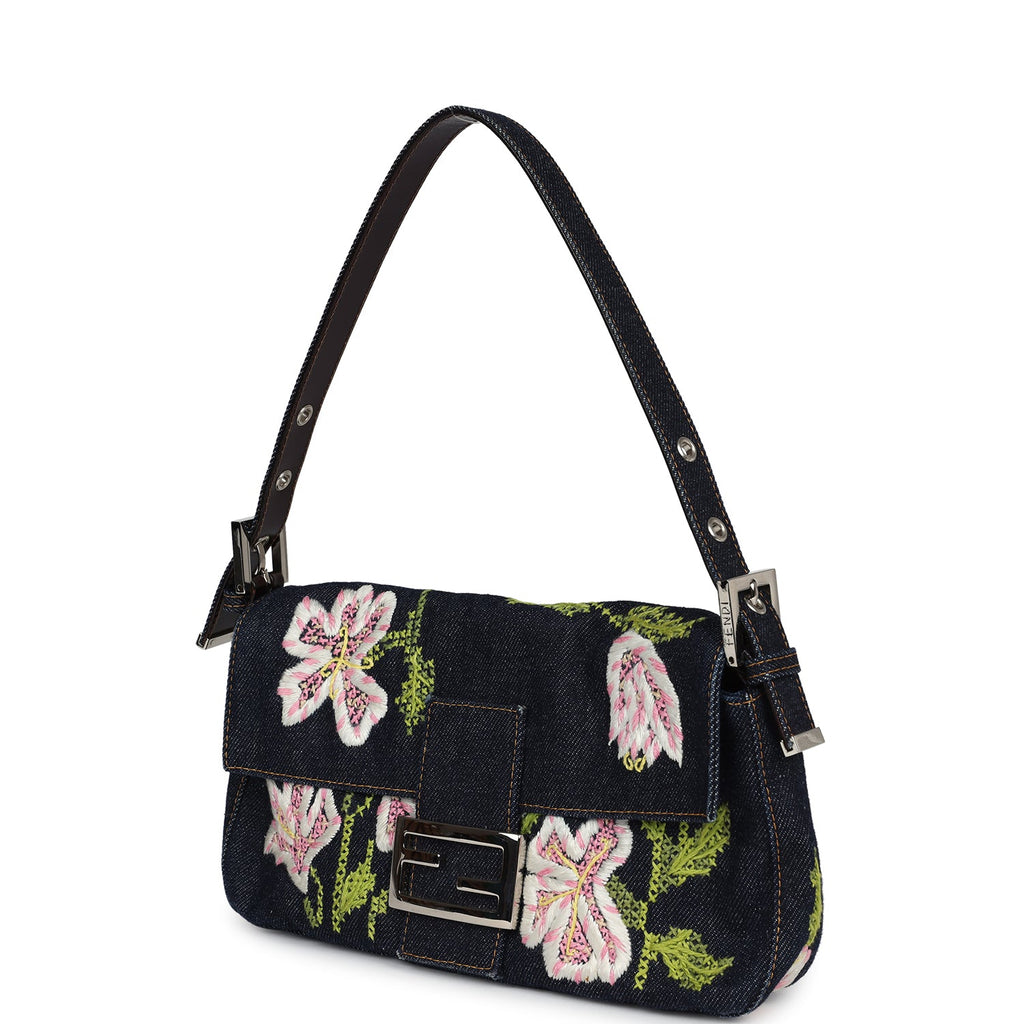 Vintage Fendi Baguette Bag Embroidered Denim Silver Hardware