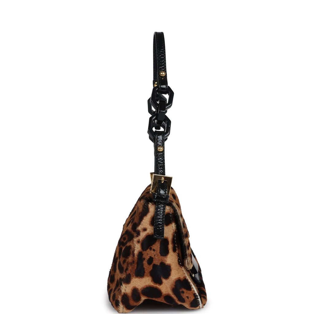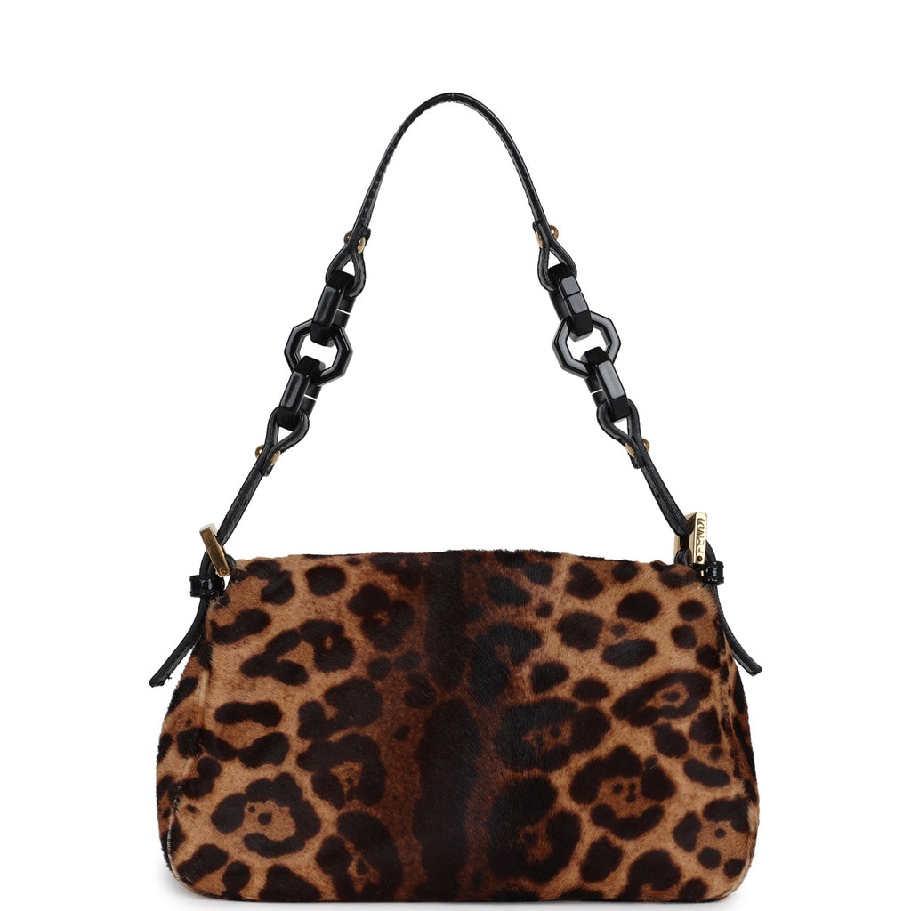 Vintage Fendi Leopard Mini Mama Bag Brown and Black Ponyhair Gold Hardware
