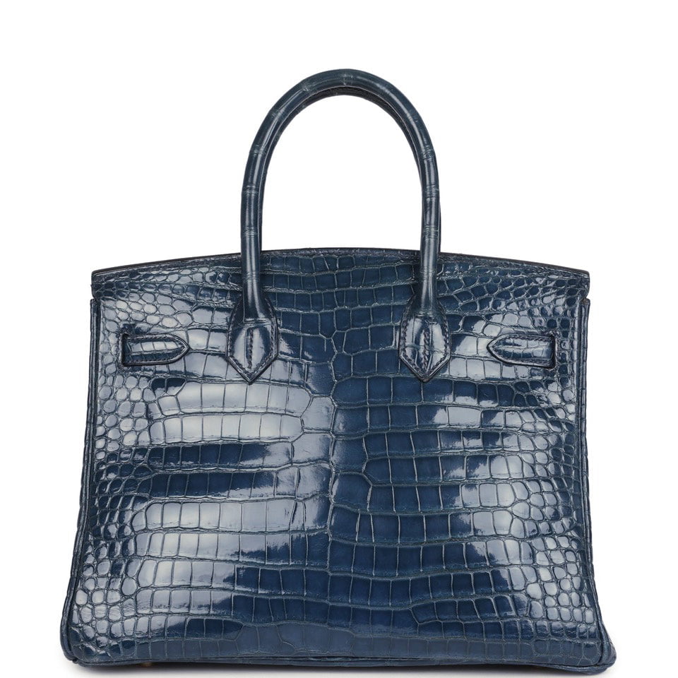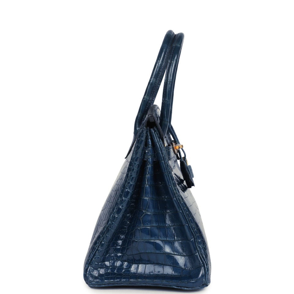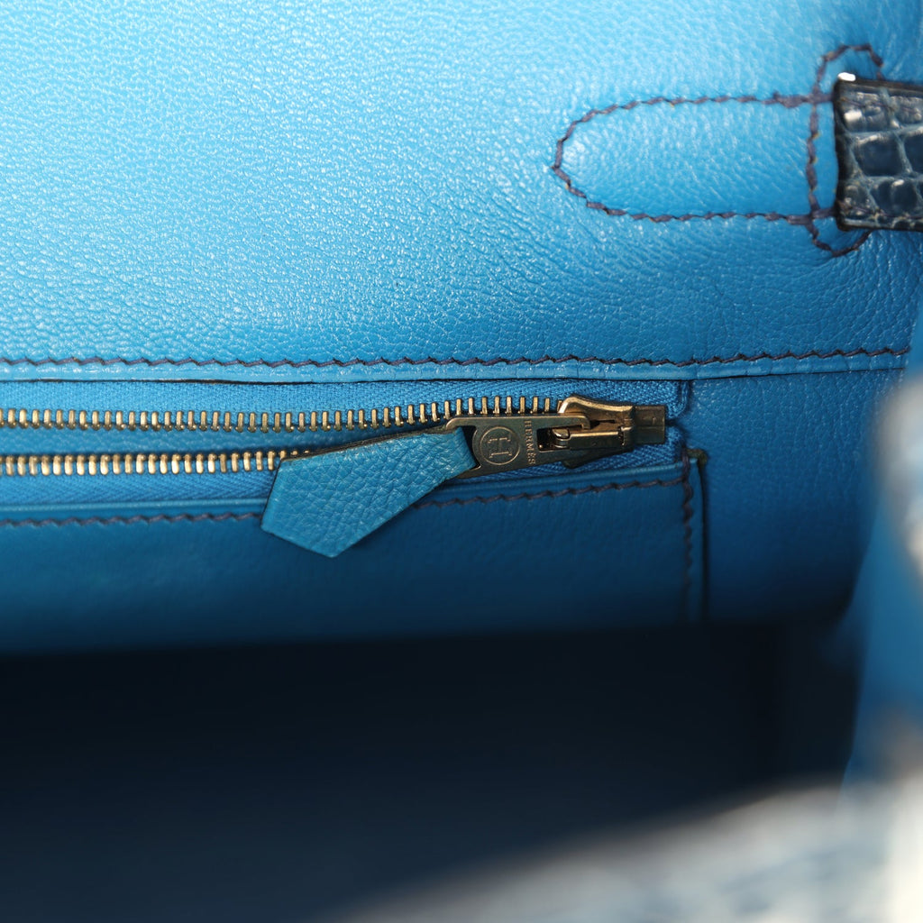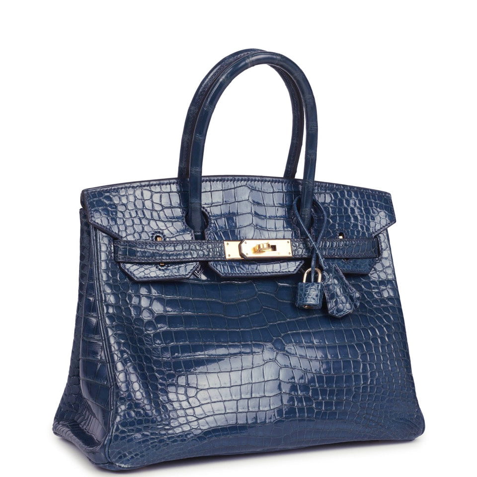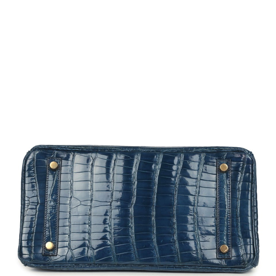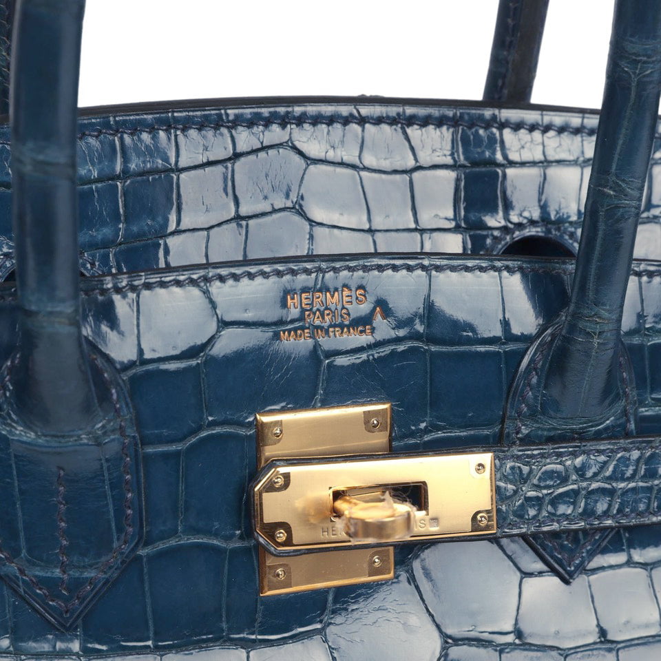 Vintage Hermes Birkin 30 Bleu Roi Shiny Porosus Crocodile Gold Hardware