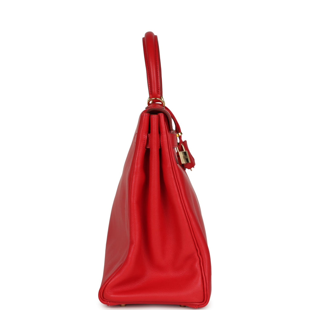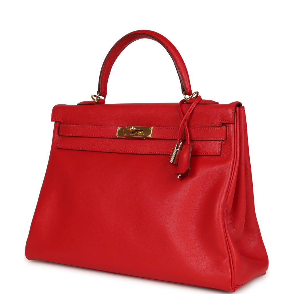 Vintage Hermes Kelly Retourne 35 Rouge Vif Gulliver Gold Hardware