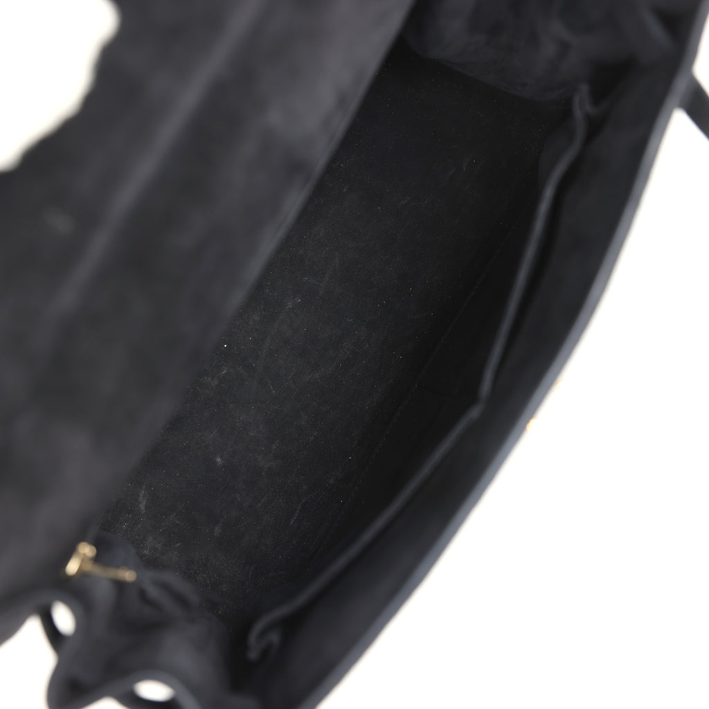Condition: Vintage; Excellent to Mint - This bag is slightly relaxed in shape structure in the back. There is no plastic on the hardware. There are visible scratches to the hardware feet and light hairline scratches to the rest of the exposed hardware. The exterior suede overall is clean with some minor rubbing to the top handle and two of the bottom corners. The interior is clean with some minor rubbing to interior base.