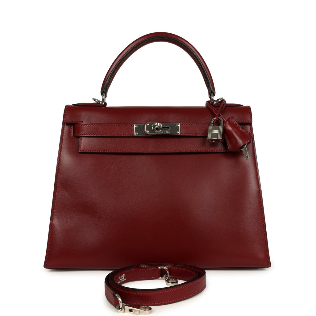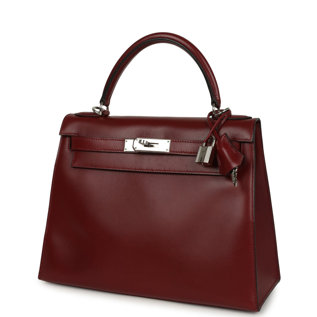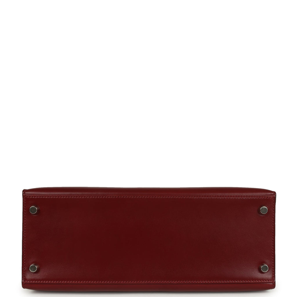 Vintage Hermes Kelly Sellier 28 Rouge H Box Palladium Hardware