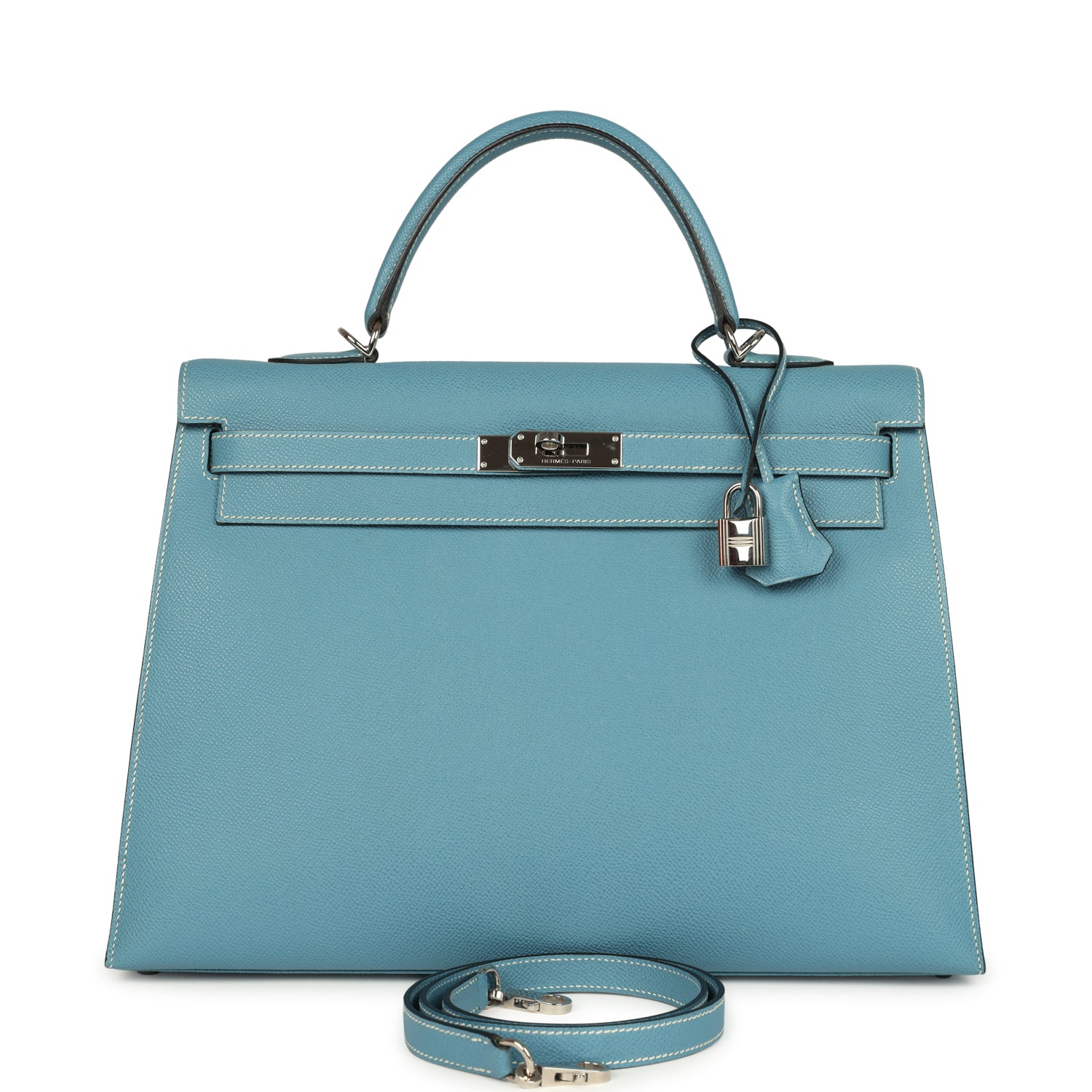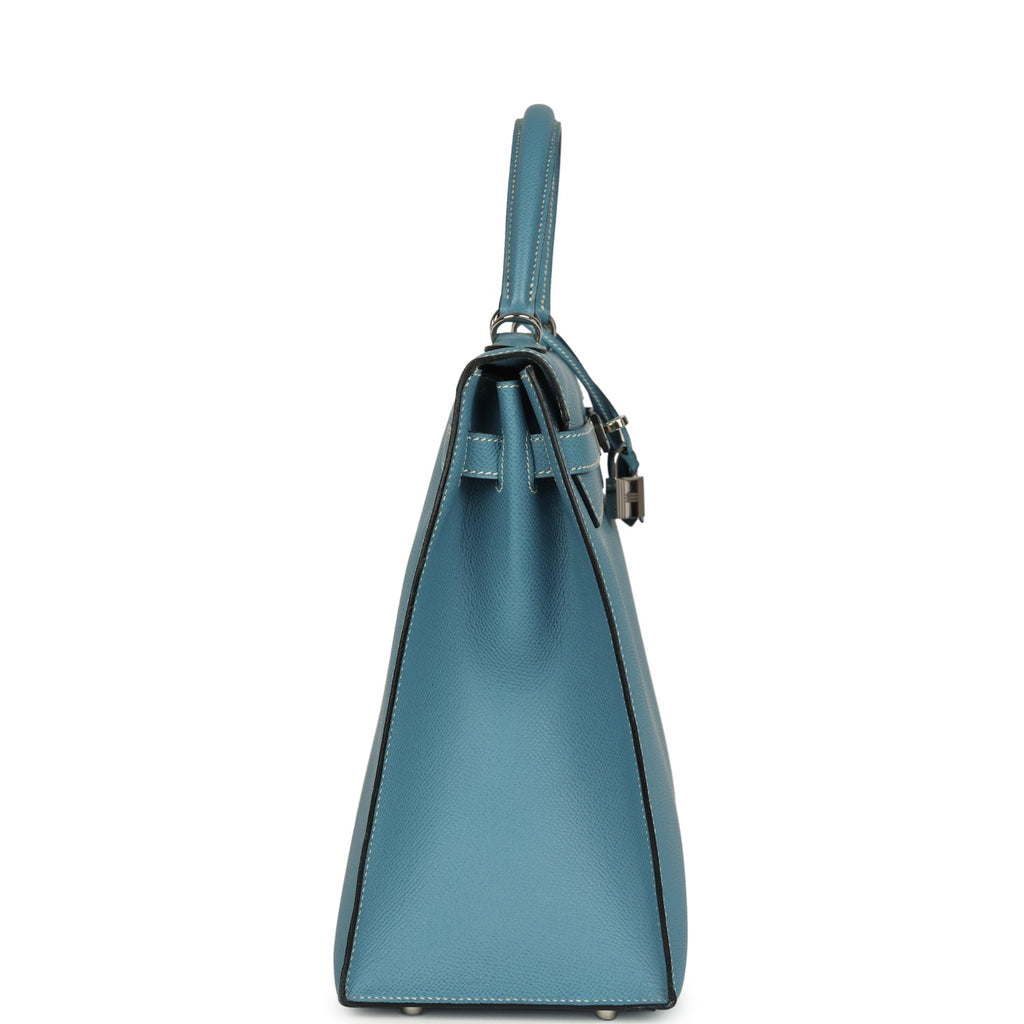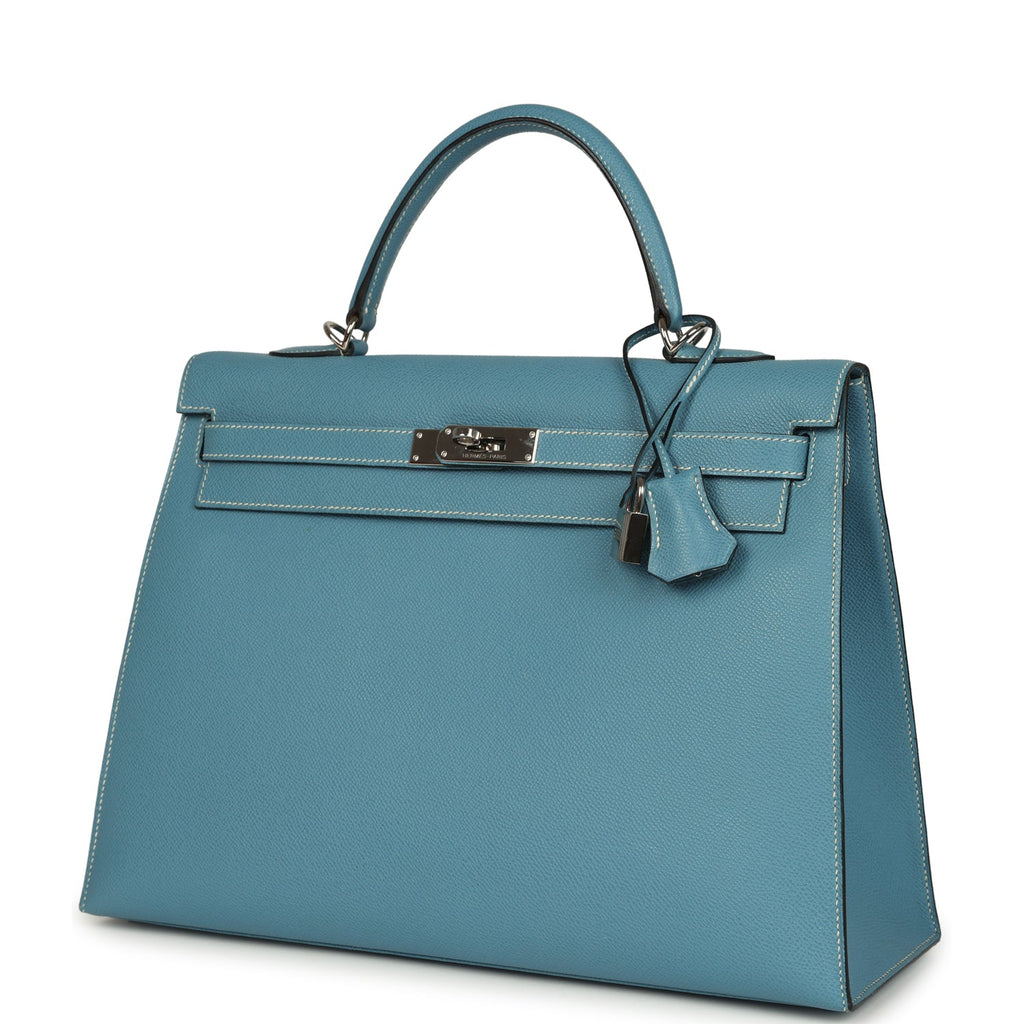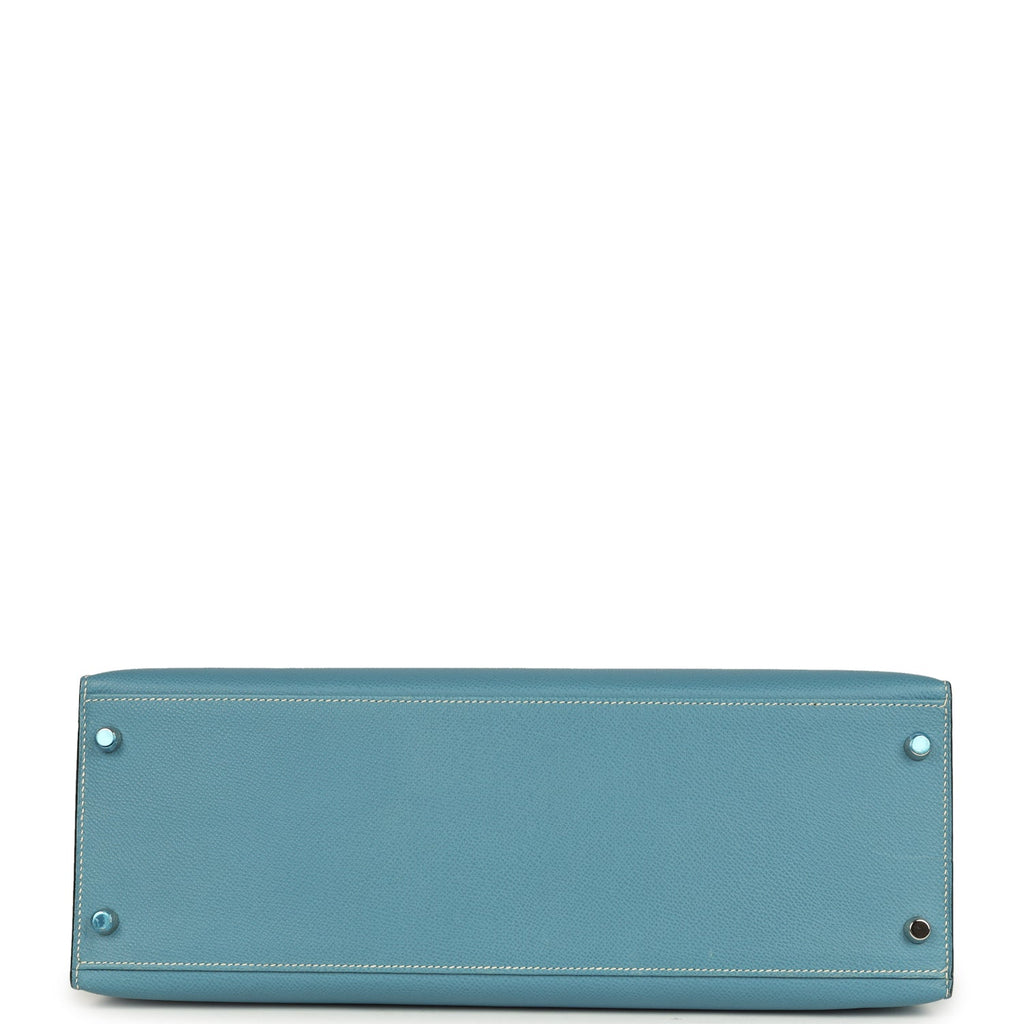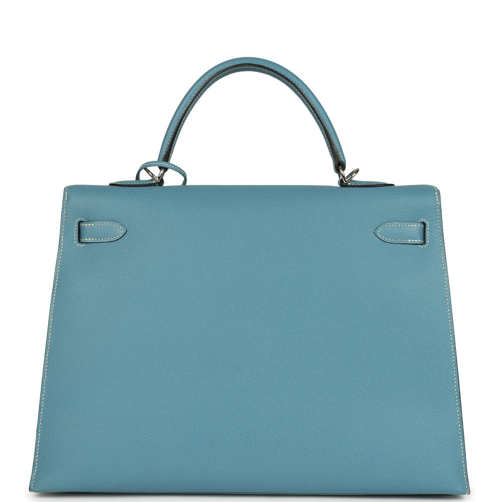 Vintage Hermes Kelly Sellier 35 Blue Jean Epsom Palladium Hardware