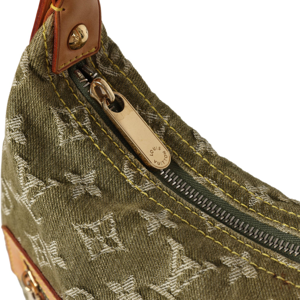 Vintage Louis Vuitton Baggy GM Green Denim Monogram Gold Hardware